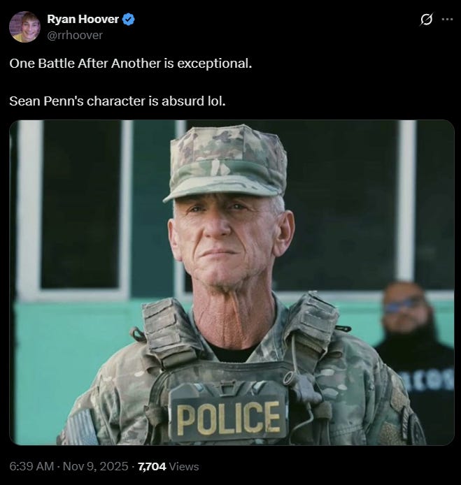Yes go see One Battle After Another, and then also Chainsaw Man, and Demon Slayer (which I haven’t seen yet but I’m giving the benefit of the doubt — anime in theaters rules).