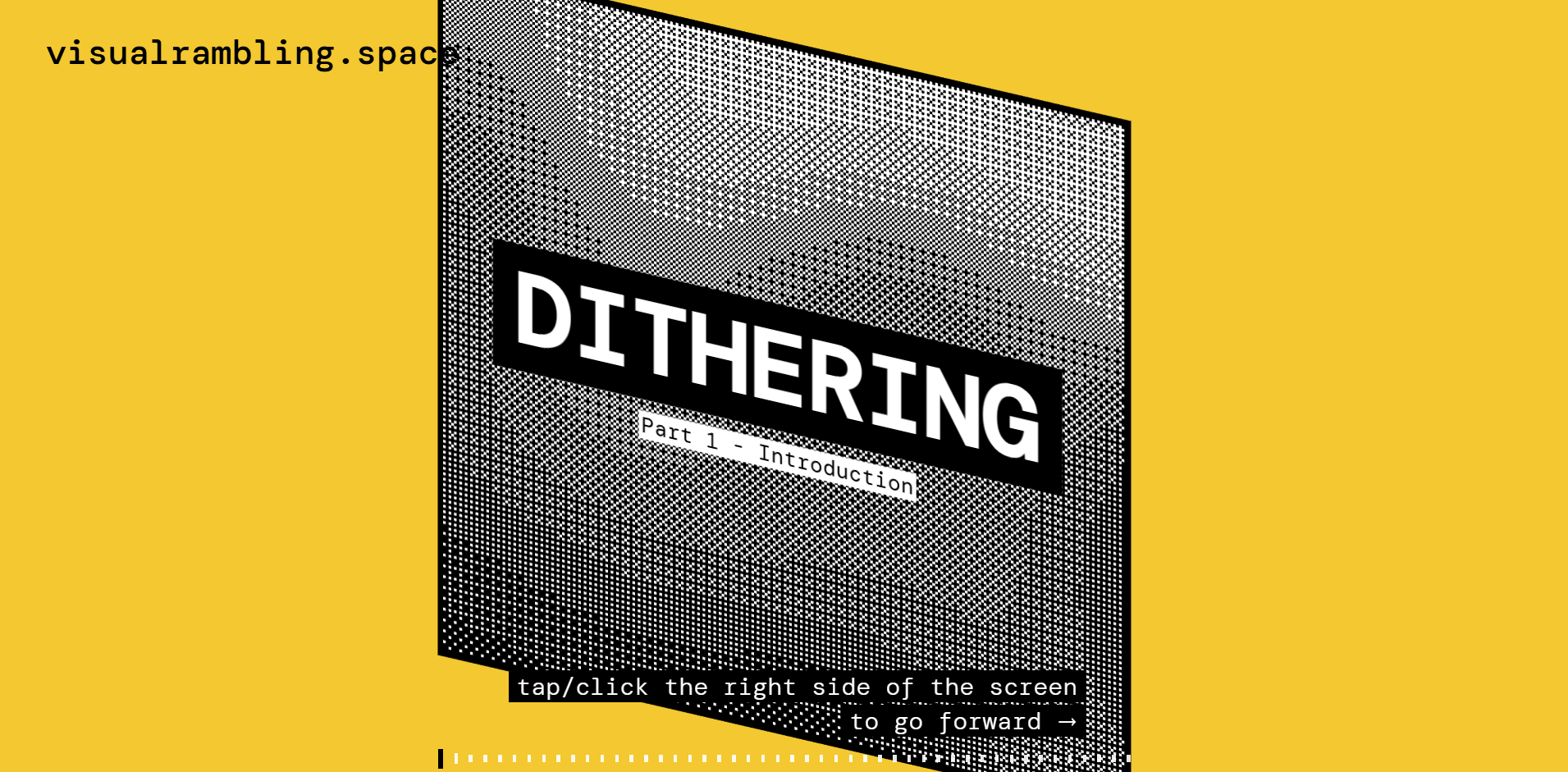 What is Dithering ← click here for a great example of unique a web experience (an increasingly rare experience) and short educational handful of minutes.